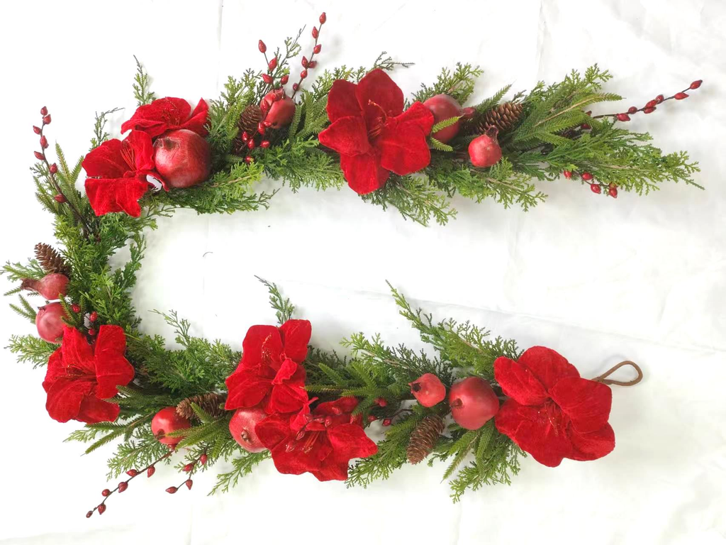 MIXED PINE/AMARYLLIS/POMEGRANATE GARLAND,6'-2/6P