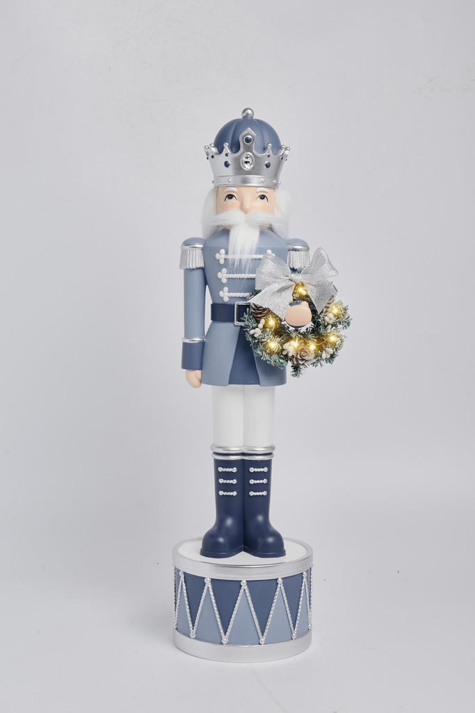 XR13369 RESIN NUTCRACKER w/WR\TH/LED ON DRUM,23.5"